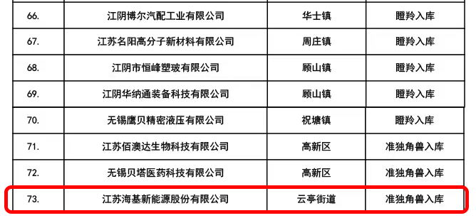 喜訊|江蘇海基新能源股份有限公司成功入圍2022年無錫市第一批準獨角獸企業培育庫入庫名單!