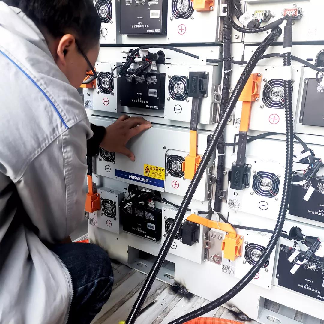 最近海基新能源廠區PACK車間門口停放的一輛白色依維柯頗引人注意,而現場PACK安裝人員正忙碌的調試系統和安裝電池,原來這是一輛移動儲能車!